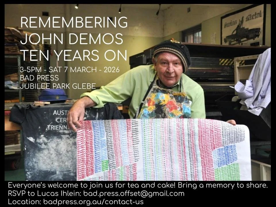 Bring a memory, an object, or a photo that helps share a story about John, or just come along and be together with people who love(d) Mr Demos.